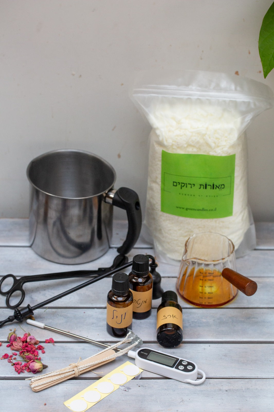 רוצים להכין נרות שנראים ומריחים בדיוק כמו שאתם אוהבים? הערכה המקצועית שלנו כוללת את כל מה שצריך כדי להכין נרות בתהליך מדוייק ומעמיק אצלכם בבית. בערכה כלולים כלים ואביזרים מקצועיים שיאפשרו לכם ליצור נרות ריחניים מושלמים באופן המדוייק והמקצועי ביותר