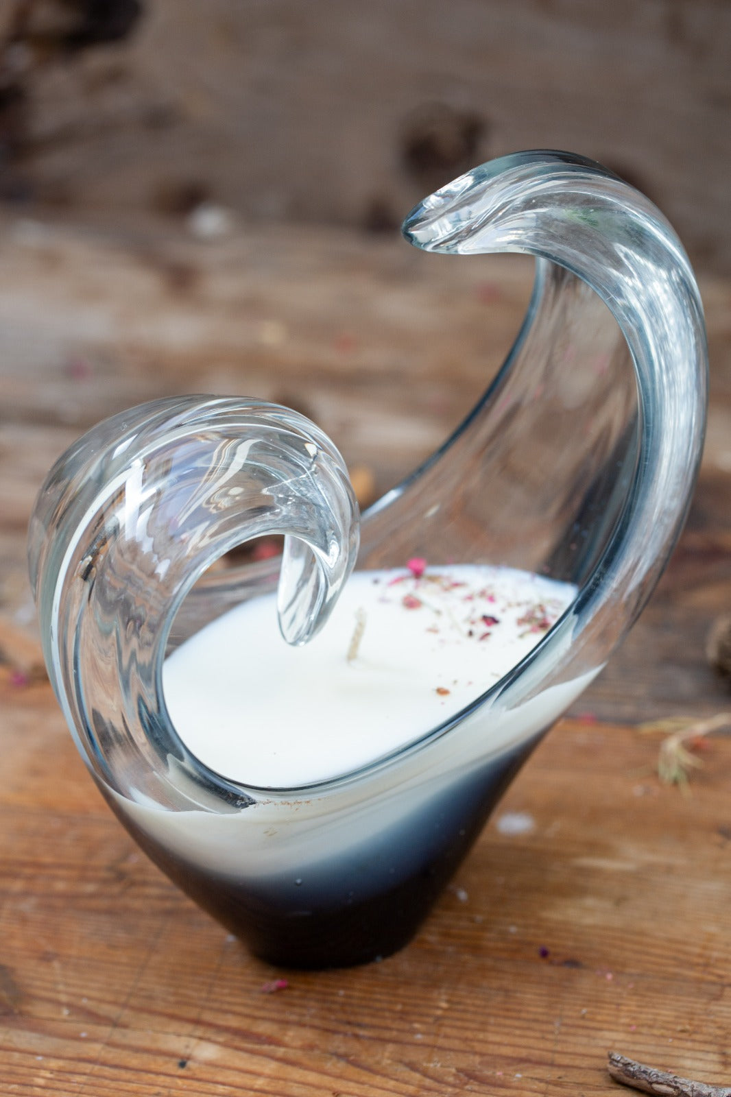 הפריט, שיוצר בשנות ה־70, עבר תהליך של מיחדוש אצלנו במאורות ירוקים והפך לנר סויה טבעי, נקי מרעלים, שנשפך בעבודת יד אל תוך כלי זכוכית וינטג' ייחודי.