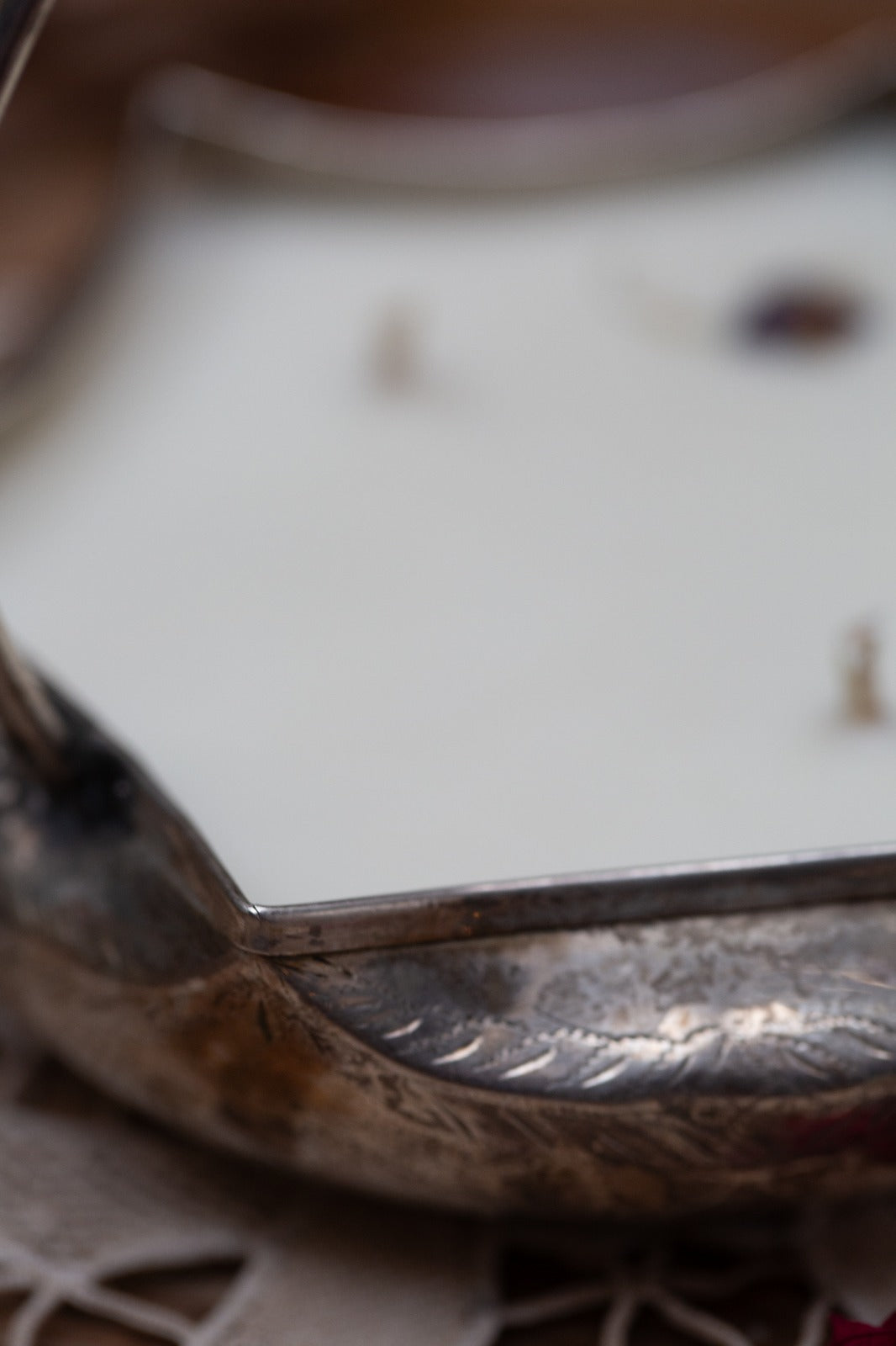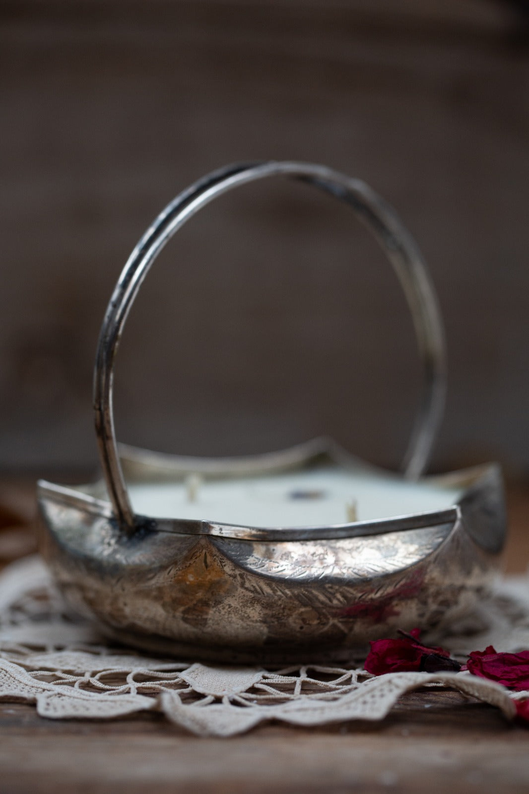סלסילת הגשה בעלת ידית קשת, עשויה כסף מצופה, בעבודת הקשה וחריטה ידנית טיפוסית למפעלי הלחמה וייצור בארה״ב ובבריטניה במחצית הראשונה של המאה ה-20. העיצוב המאופיין בקווים רכים, דופן בצורת עלים מעוגלים ודוגמאות חריטה של עלווה וצמחים, מצביע על השפעת סגנון ארט-נובו מאוחרת (בערך 1920-1940). כלי מסוג זה יועד במקור להגשת ממתקים, אגוזים או עוגיות במסיבות תה וסלונים ביתיים. החומריות והטכניקה תואמים ייצור סדרתי במפעלים כגון Sheffield Plate באנגליה או Leonard/International Silver בארה״ב, בתקופה שבין 1930-1950.