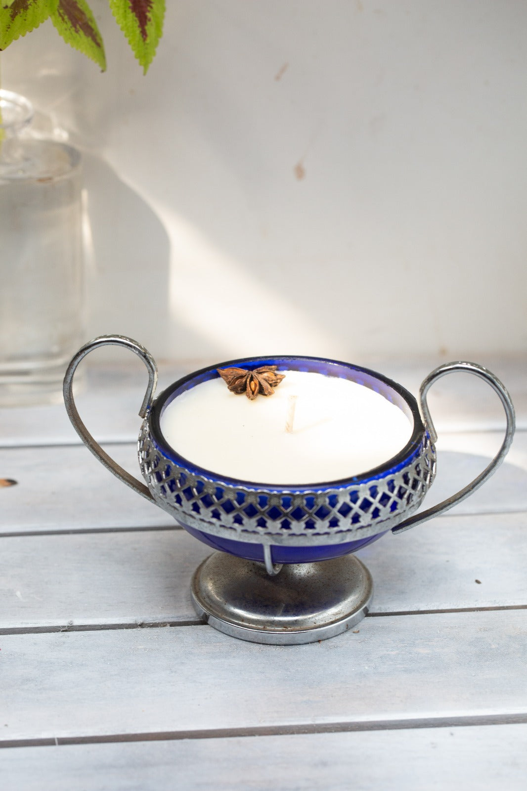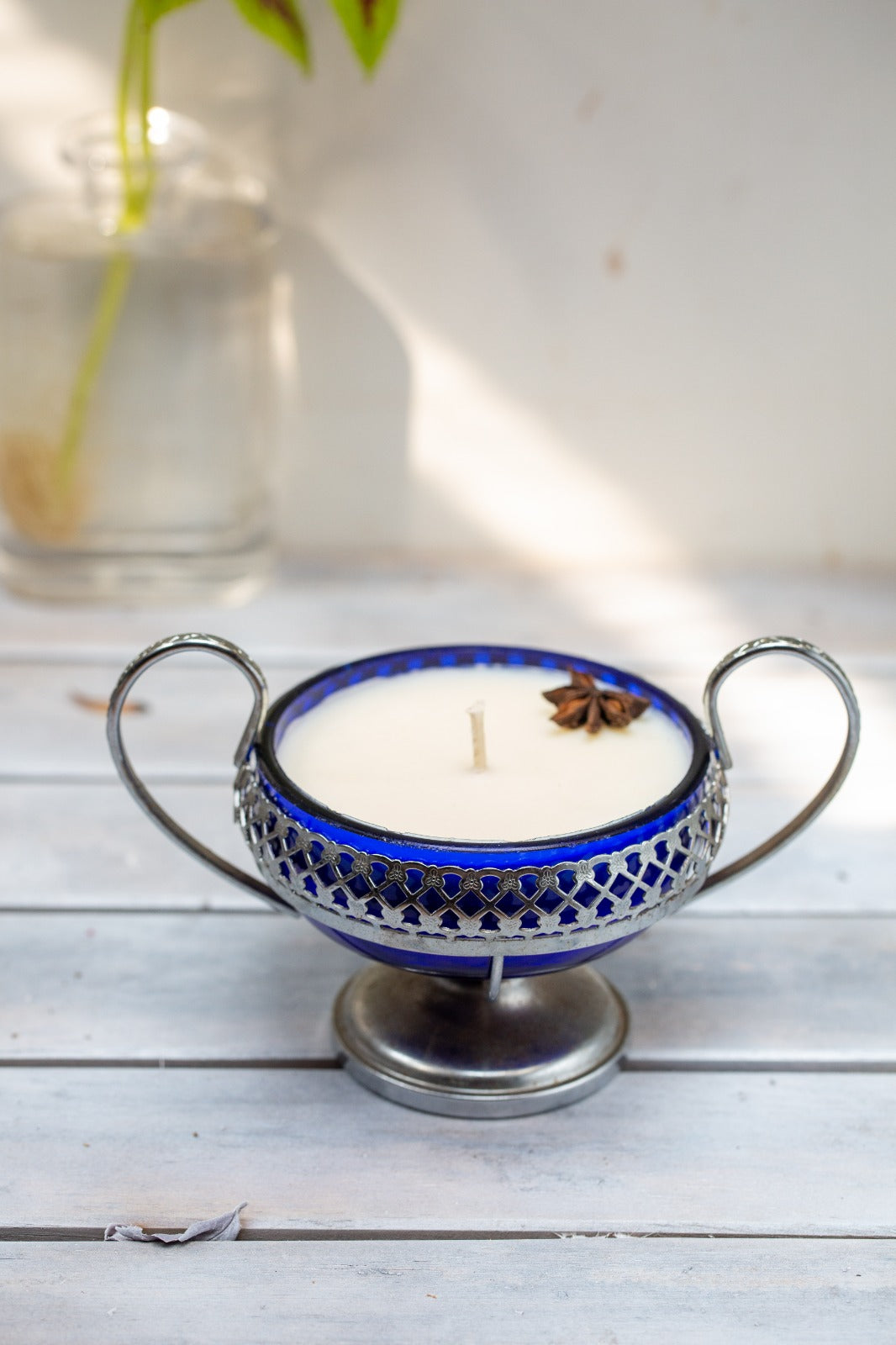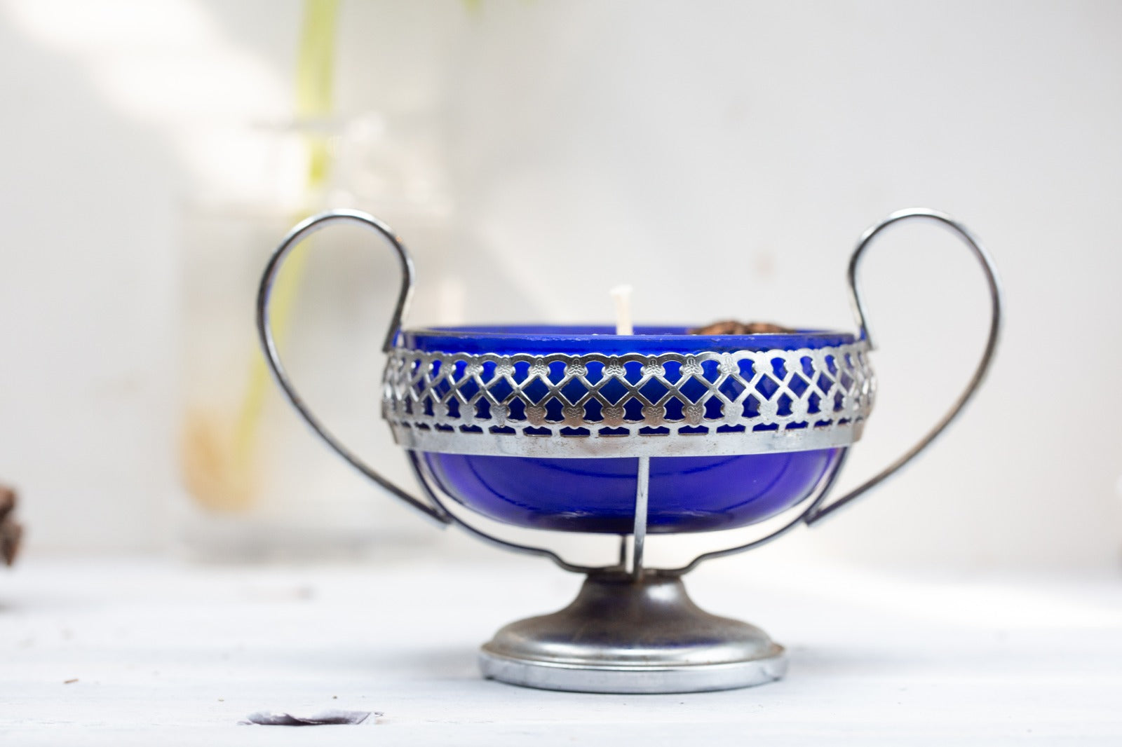 סלסלת תחרה כסף מצופה וקערית כחולה